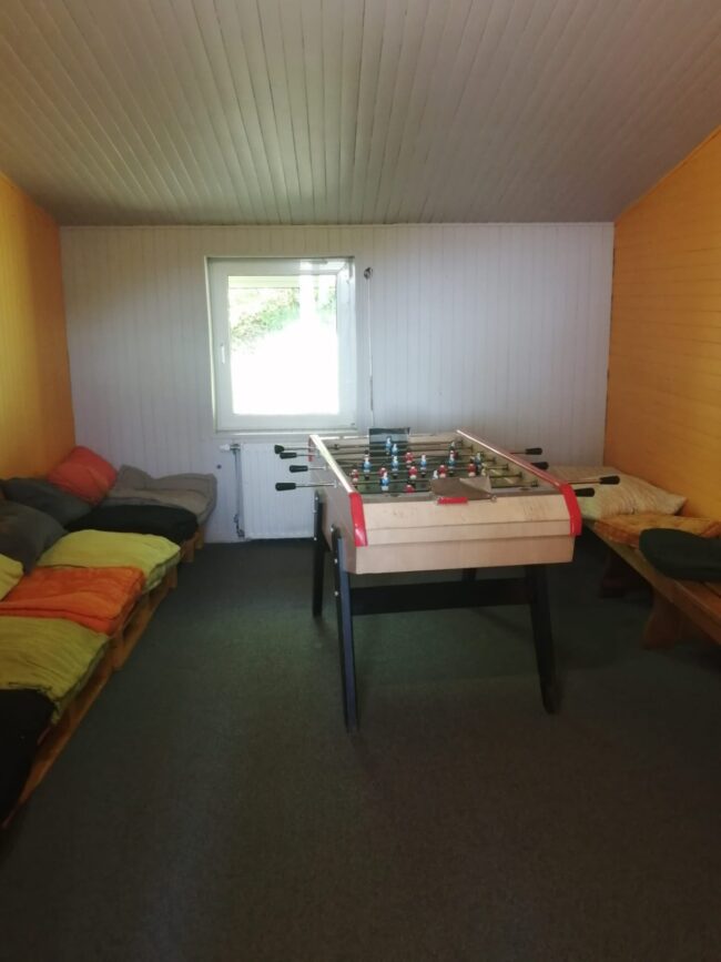 Parking, terrasse, jeux, baby-foot, table de pique-nique